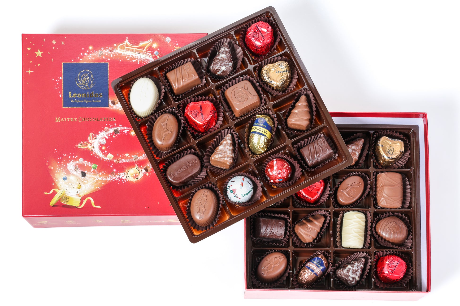 32 бр бонбони от колекцията на Leonidas 480 гр. Несравнимо удоволствие Насладете се на празничния вкус на Leonidas, създаден с 100% чисто какаово масло, произведено в Белгия от нашите Maîtres Chocolatiers, без палмово масло и с грижа към природата. Перфектен избор за истинска шоколадова наслада!